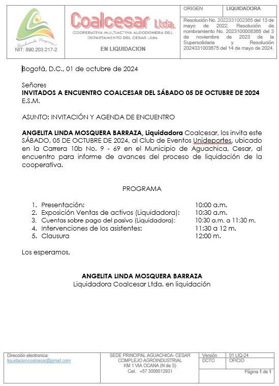 COMUNICADO COALCESAR ABRIL 2025