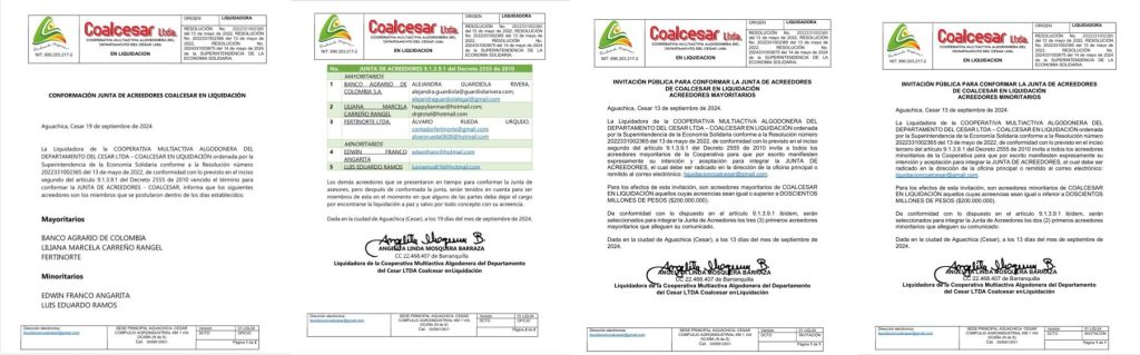 POR MEDIO DE LA CUAL SE CONSTITUYE LA JUNTA DE ACREEDORES DENTRO DEL PROCESO DE LIQUIDACION DE COALCESAR LTDA- EN LIQUIDACION